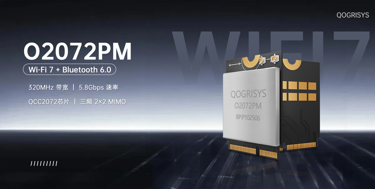 随着算力与架构能力提升,下一代终端对无线连接的需求同步升级。为了让设备在高密度、低时延、多链路环境中保持稳定表现,QOGRISYS 推出采用高通平台的 O2072PM 三频 Wi-Fi 7 + Bluetooth 6.0 模组。该模组在 320MHz、4K QAM、eMLSR 多链路与高通先进射频架构上进行深度优化,可在家庭、工业、园区与智能设备中实现更可靠的高带宽连接。凭借紧凑封装与 PCIe 设计,O2072PM 为终端厂商提供了可快速量产、性能稳定、面向未来的 Wi-Fi 7 连接底座。